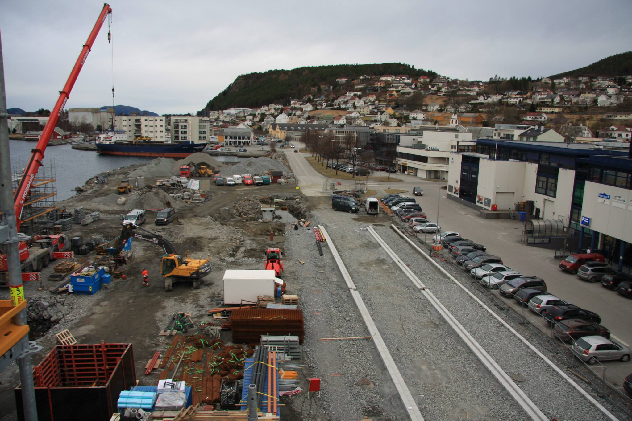 Ombygging av gate i Ulsteinvik sentrum. Om lag 1 km med vegar og fortau, plasstøypt bru, VA anlegg og fjernvarmeanlegg.